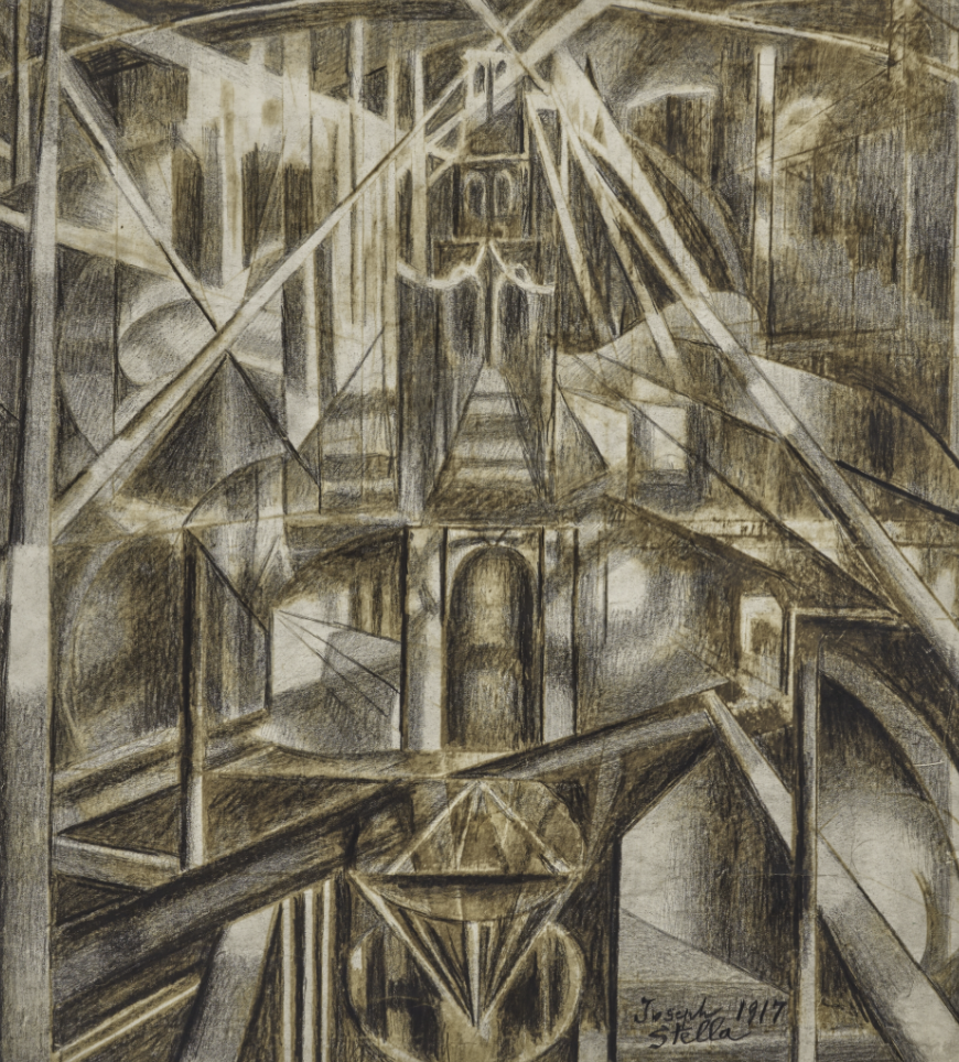 Joseph Stella nació en Italia en 1877 y pasó su vida entera moviéndose entre dos mundos sin terminar de instalarse en ninguno. En Italia, la sombra del Renacimiento lo asfixiaba. En América, el paisaje industrial lo fascinó y lo desconcertó a la vez. Viajó a París, absorbió el cubismo, el futurismo, el fauvismo — y volvió a Nueva York con todo eso encima.
